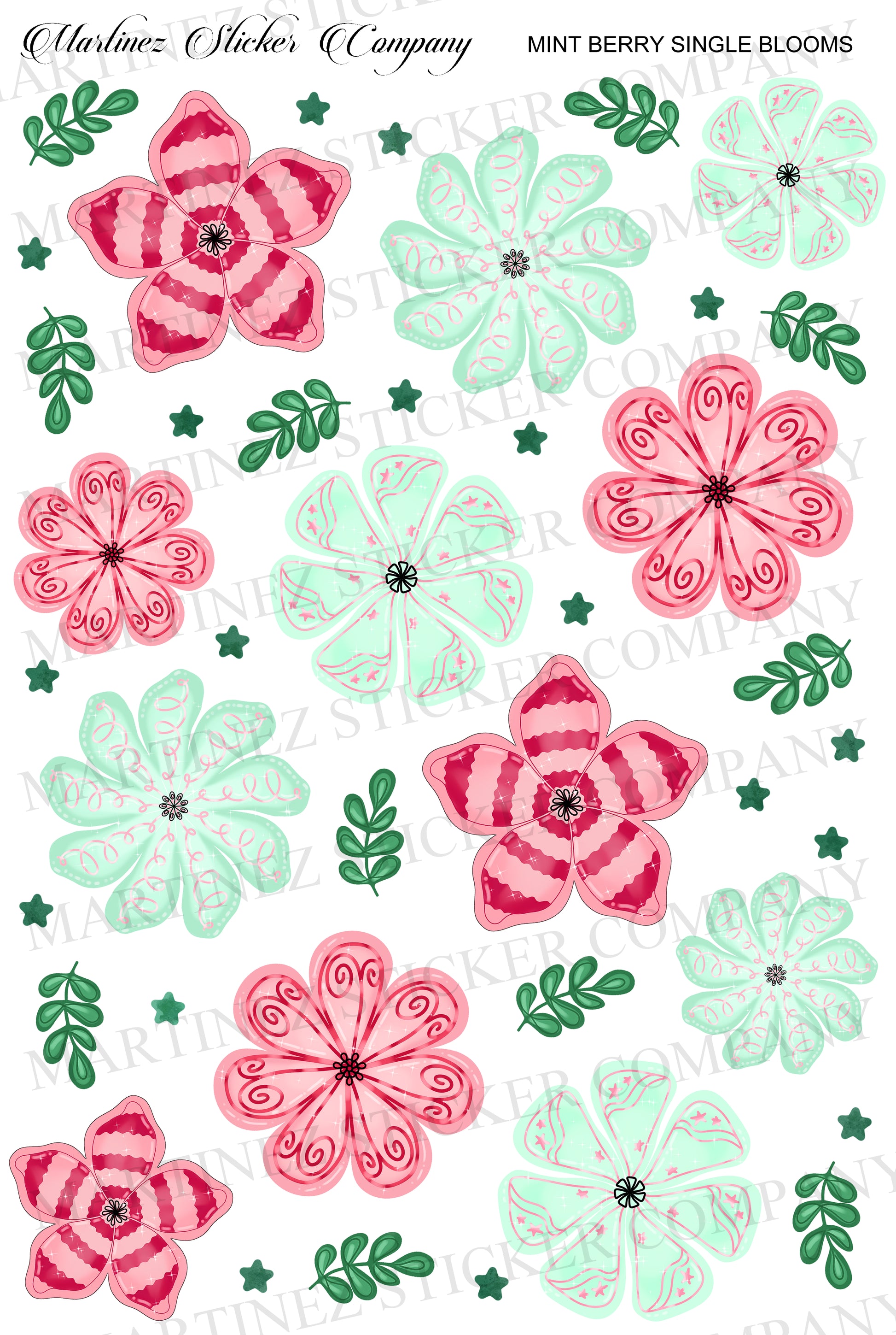 Mint Berry Single Blooms for Christmas with fun patterns matching the colors of the collection! Originally drawn by me.