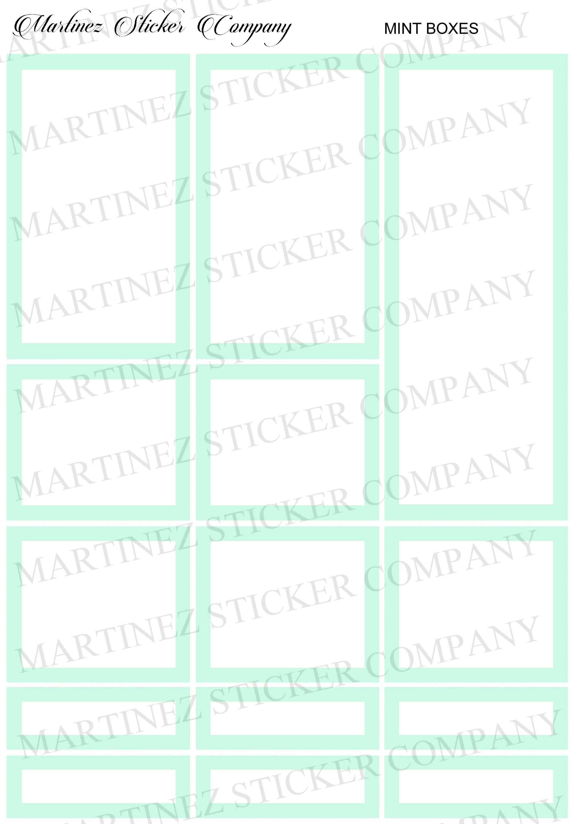 The perfect functional boxes in mint! Use these to write down important reminders, lists, etc! You can also put some of your lettered words in these boxes! Size is similar to a classic HP vertical, but have found they fit pretty well in a medium passion planner also! These can be used as you please and can work with anything!