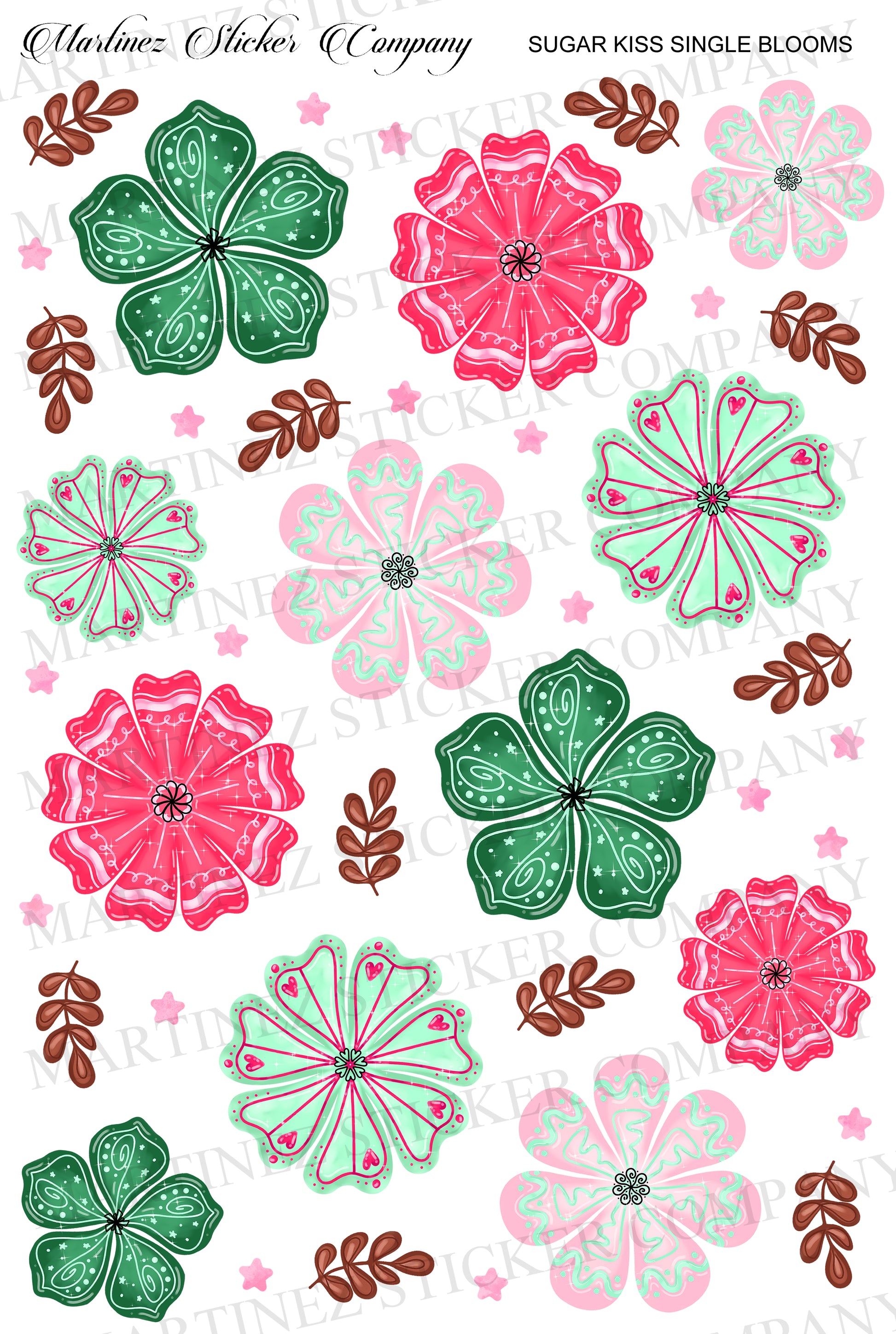 Sugar Kiss Single Blooms for Christmas with fun patterns matching the colors of the collection! Originally drawn by me.